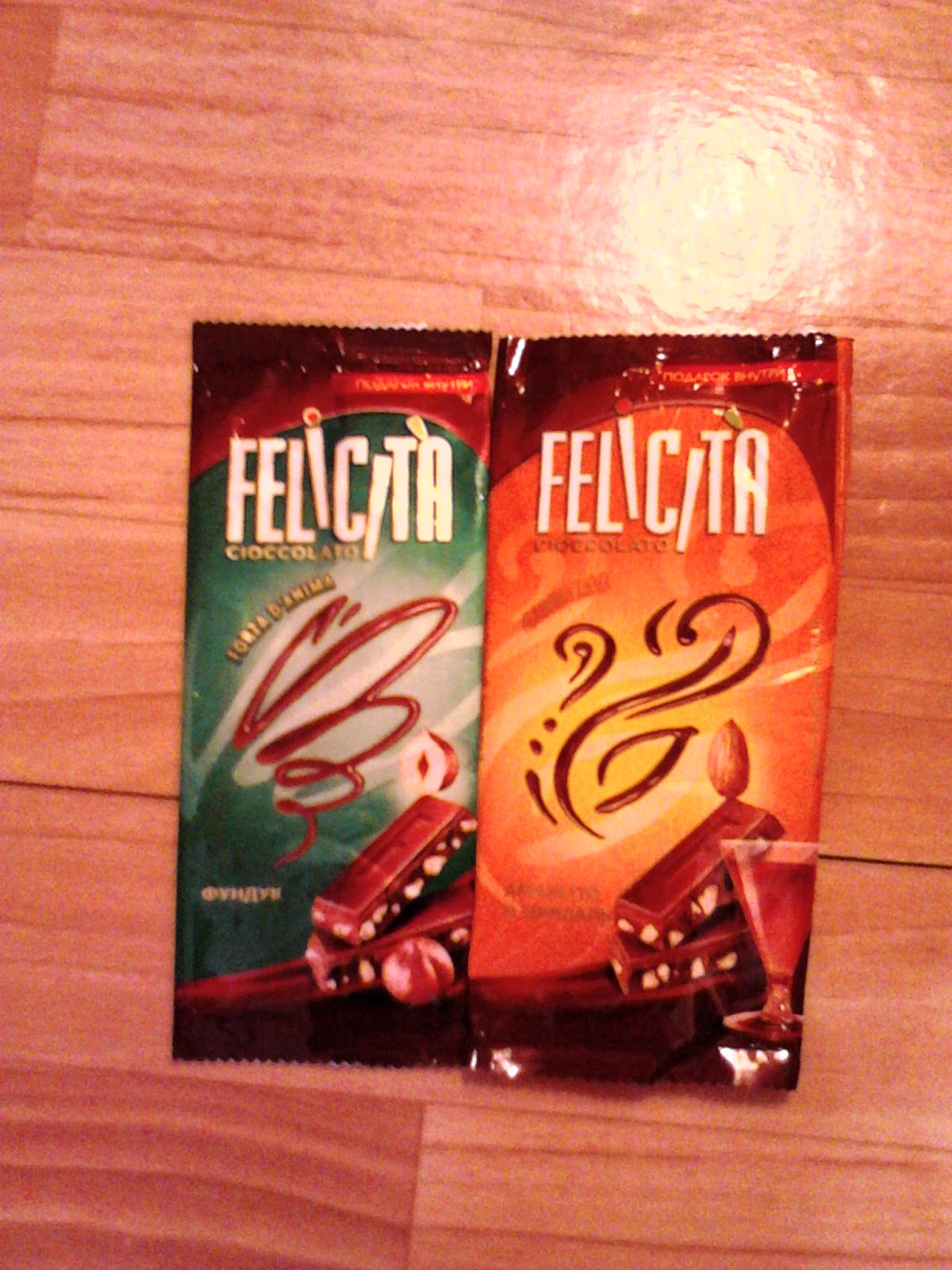 Felicita. Молочный с фундуком, молочный с amaretto и миндалём.